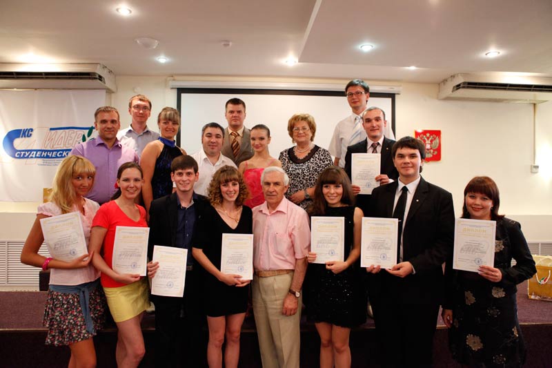 Победительница окружного этапа Всероссийского конкурса «Студенческий лидер – 2011» Ксения Касицина (г.Самара), председатель Студенческого координационного совета ПФО М.Ю. Долгов и заместитель председателя профкома КНИТУ Динар Хафизов