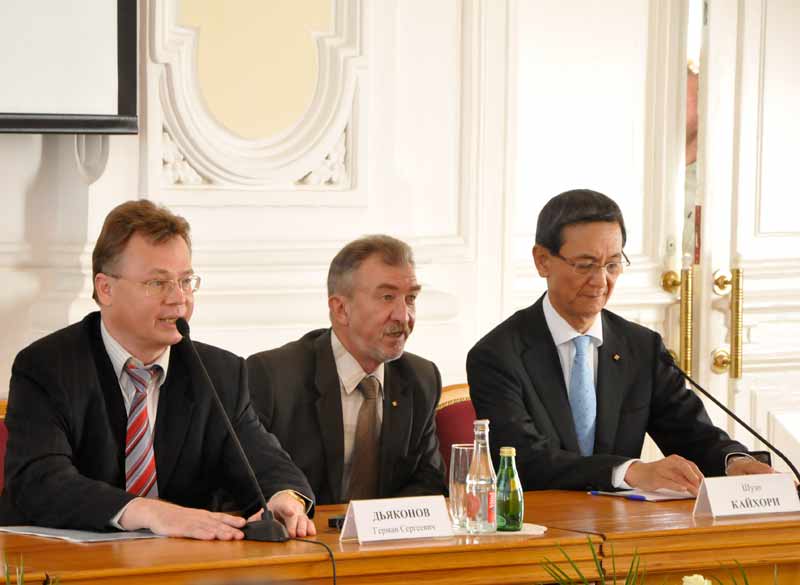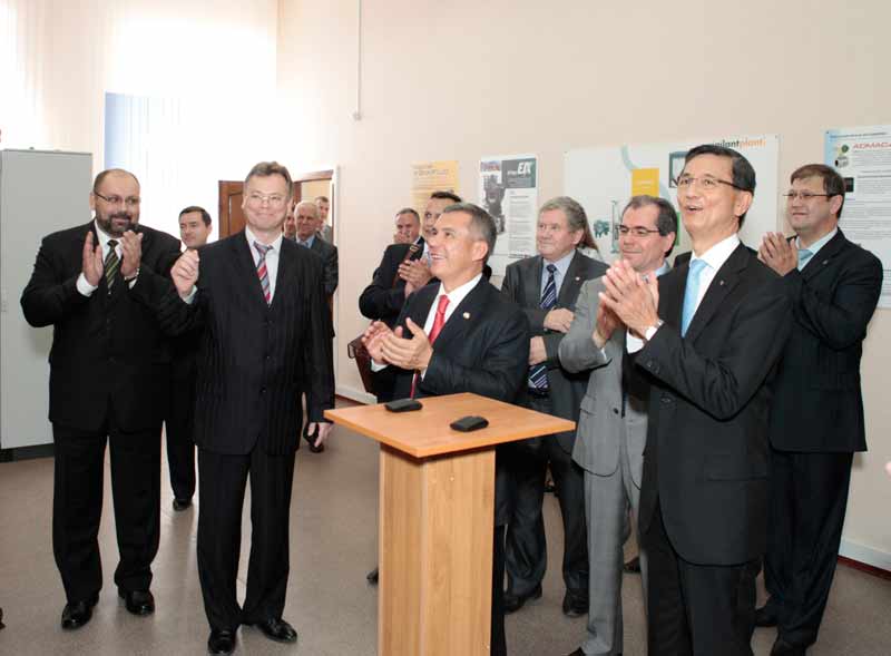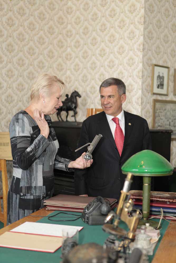 Le president de la Republique de Tatarstan Roustam N. Minnikhanov, le president de la compagnie «Yokogawa», le docteur honorable de l'UNRTK Chouzo Kajkhori, Le president de l'UNRTK German S. Dyakonov