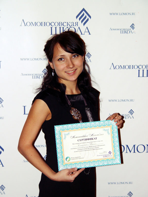 Сертификат о том, что Перепелкиной Аэлите посвящена статья в 3 томе Ломоносовской энциклопедии