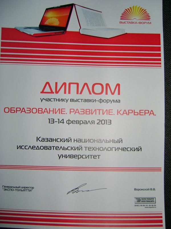 13-14 февраля 2013 г. ФГБОУ ВПО «КНИТУ» принял участие в выставке-форуме «Образование. Развитие. Карьера»