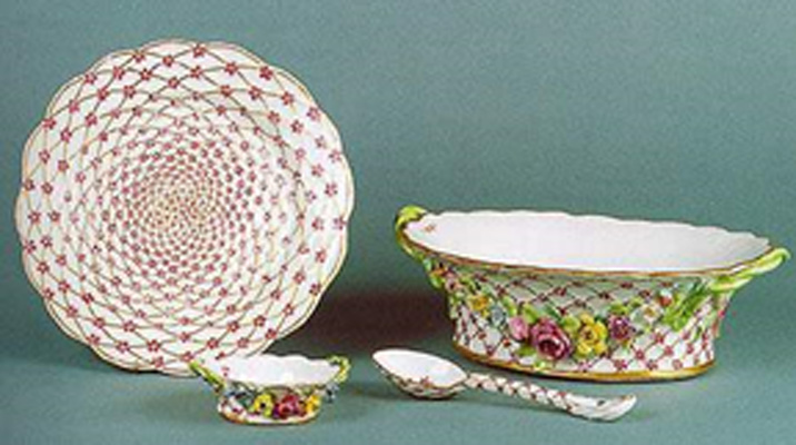 Скрещенные синие мечи - эмблема саксонского А что же Россия? До появления собственного фарфора Россия, как и Европа, покупала диковинный «звонкий товар» у иноземных купцов. Отдельные образцы китайского фарфора появились в России, по-видимому, в то же время, что и в европейских странах, в XIII-XIV вв. Об этом свидетельствуют черепки разбитых блюд и кувшинов, найденные в разное время в старых культурных слоях на территории Московского Кремля. С открытием Мейсенской мануфактуры в обиходе русской знати стал преобладать саксонский фарфор. Попытки открыть секрет фарфора велись в России с 1718 г., когда Петр I познакомился с саксонским изобретением при дрезденском дворе. В 1723 году Петр I издал указ о предоставлении льгот и привилегий фабрикантам, которые сумеют в России "куриозное художество ввести и распространить", особенно такие, для производства которых будут использованы не привозные, а имеющиеся в Российской империи материалы. И в 1724 году в Москве Афанасий Кириллович Гребенщиков открыл первый ценинный завод, на котором вначале изготавливались курительные трубки по голландским образцам, затем в ассортименте завода появились изразцы и с конца 1730-х гг. - ценинная (крытая эмалью) посуда.