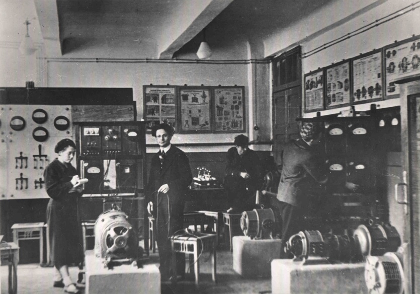 В связи с уходом из института доцента И.И. Брюно в 1934 году старшим преподавателем электротехники назначен инженер А.П. Александров. В том же году началось создание учебной лаборатории. В 1935 году для лаборатории электротехники было выделено помещение в цокольном этаже корпуса А.