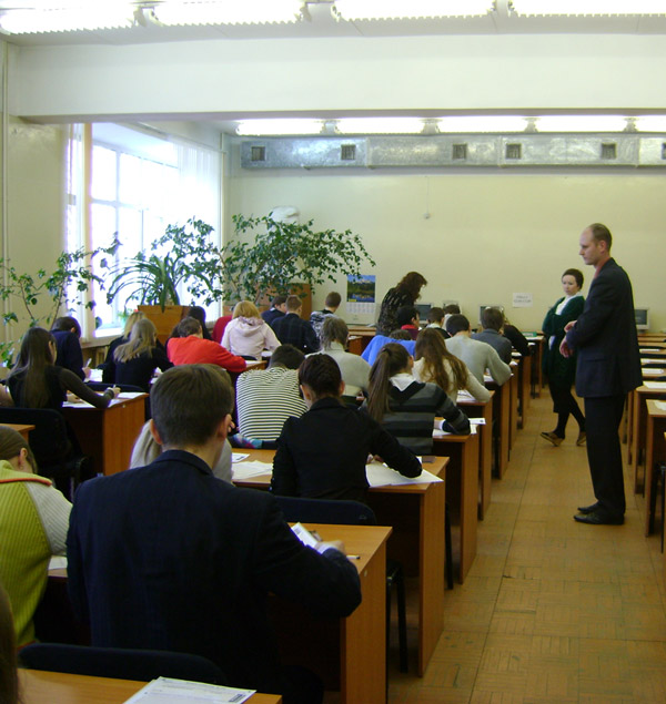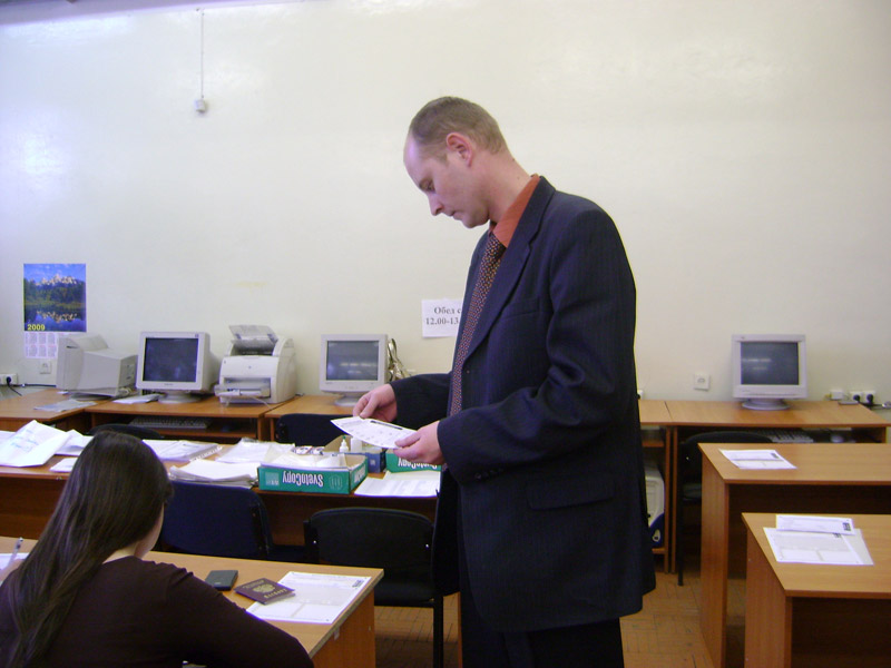 Декан ФДП КГТУ Гаврилов А.В. контролирует правильность заполнения регистрационной части заданий по физике