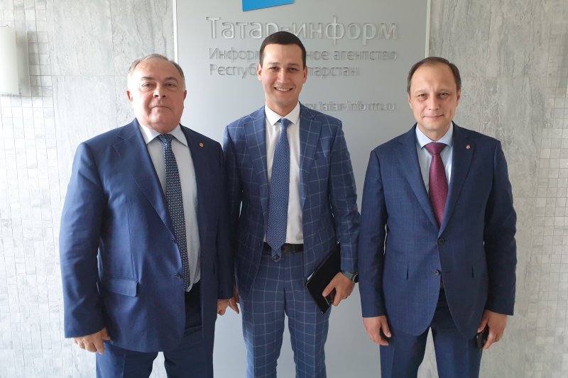 И. О. Рассман, А. Ш. Хусаинов, С. В. Юшко после брифинга