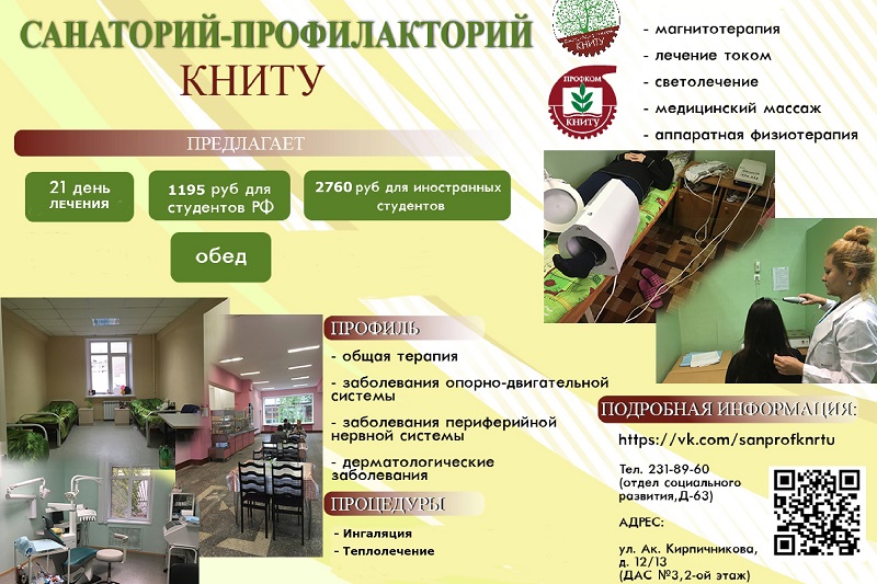 Санаторий-профилакторий КНИТУ вновь открывает свои двери для студентов очной формы обучения