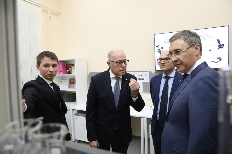 Профессор Галяметдинов представил Валерию Фалькову потенциал лаборатории Smart Materials