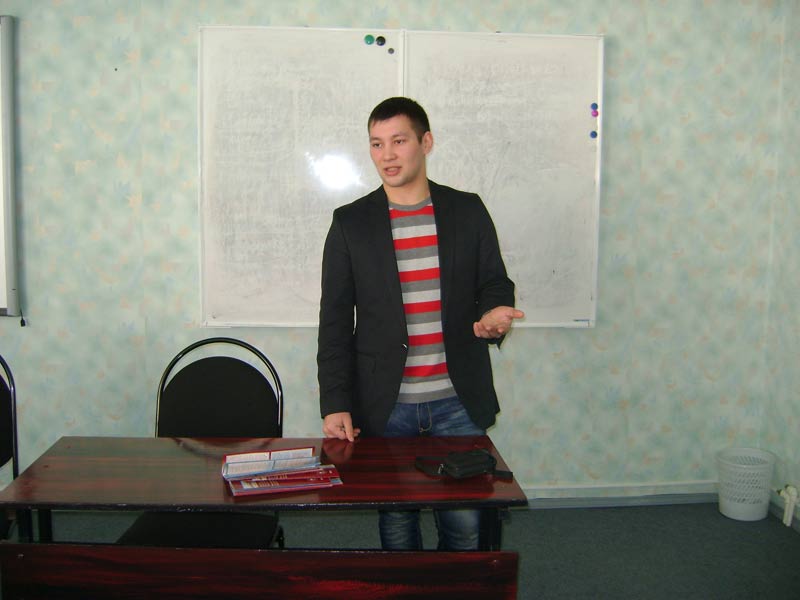 Доцент кафедры ОХЗ А.С. Балыбердин от имени ФЭТИБ вручил химическую стеклопосуду и реактивы МОУ «СОШ №2» г. Мамадыш