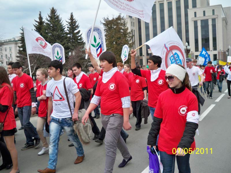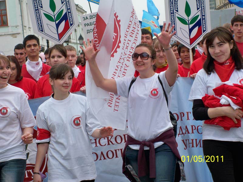 Студенты технологического университета на первомайском митинге
