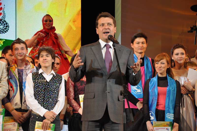 На церемонии награждения: популярный ведущий КГТУ и руководитель СТЭМ «ЮМОРЕЗКА» Дмитрий Юдин (фото АНО «Исполнительная дирекция «Казань 2013»)