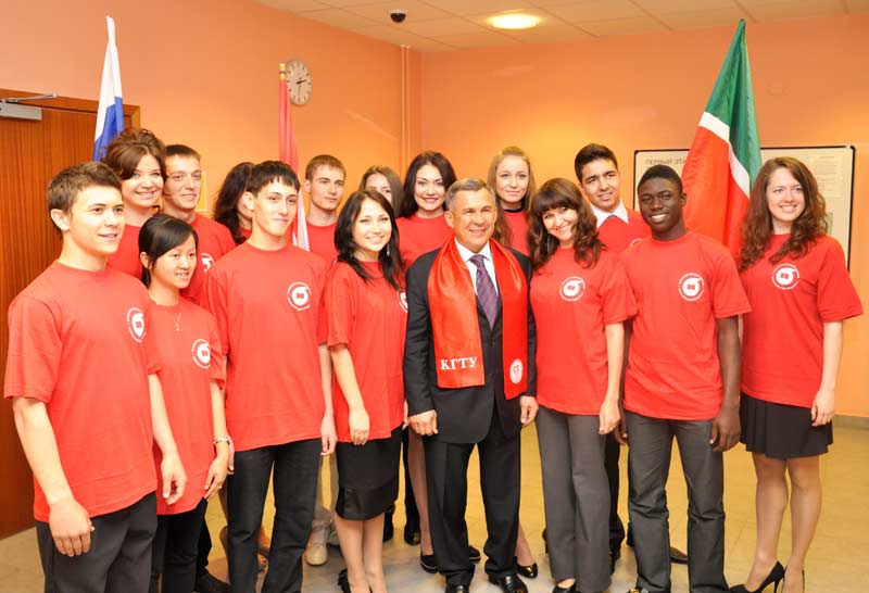Президент Татарстана Р.Н. Минниханов со студентами КГТУ