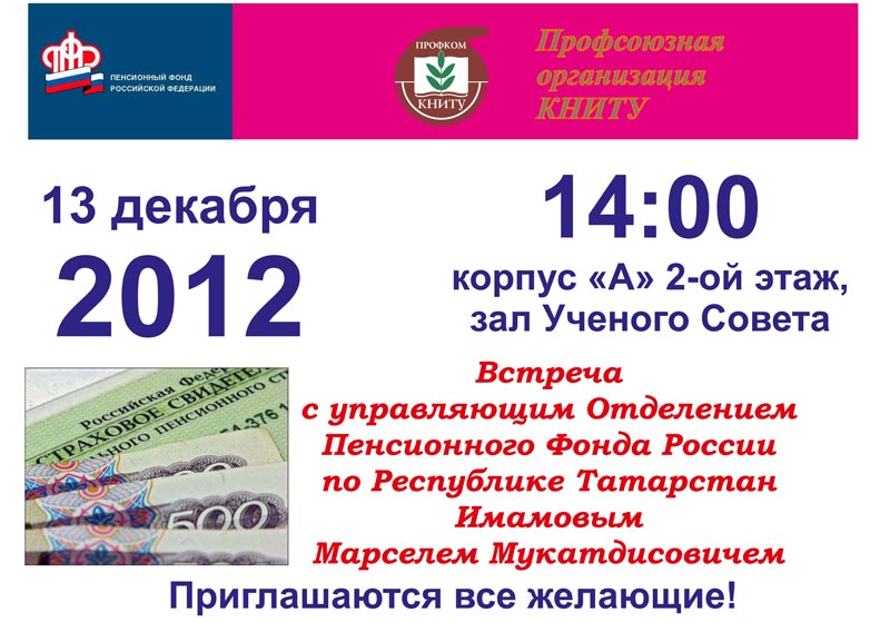 В КНИТУ состоится встреча с управляющим Отделением Пенсионного Фонда России по Республике Татарстан Имамовым Марселем Мукатдисовичем