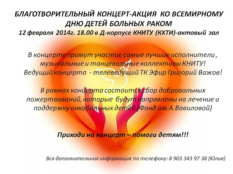 БЛАГОТВОРИТЕЛЬНЫЙ КОНЦЕРТ-АКЦИЯ КО ВСЕМИРНОМУ ДНЮ ДЕТЕЙ БОЛЬНЫХ РАКОМ