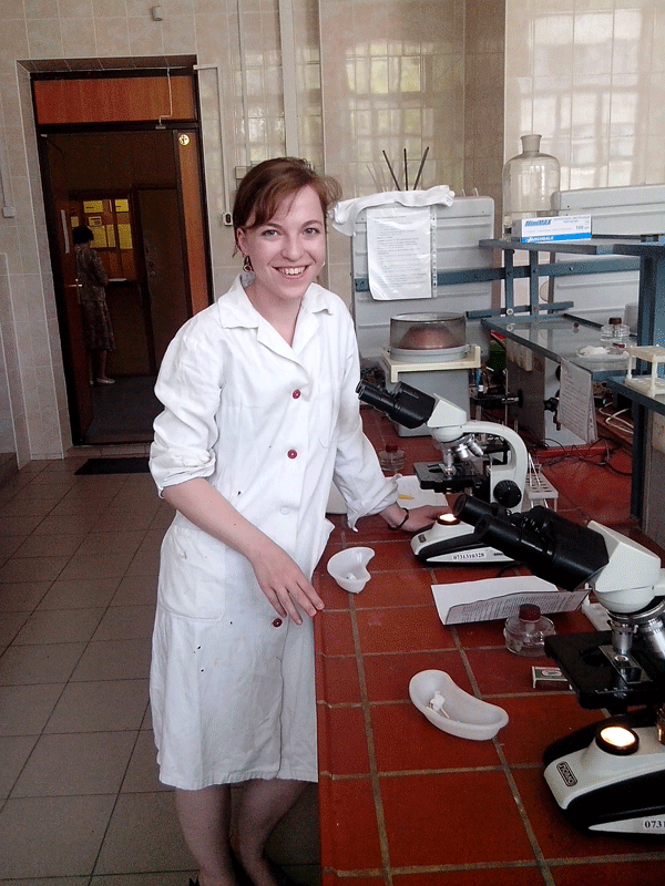 Клара Сворникова в лаборатории кафедры ПБТ КНИТУ