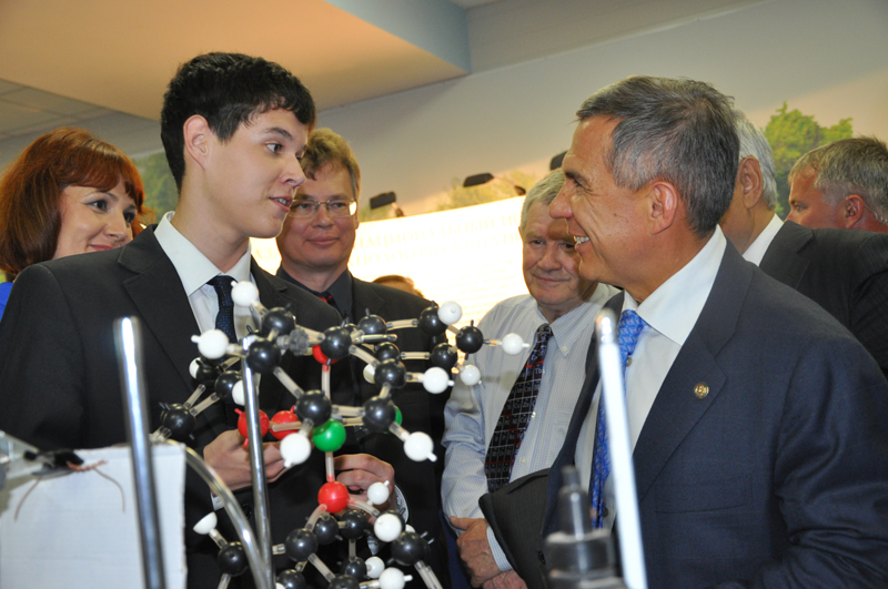 Президент Р.Н.Минниханов знакомится с разработкой лицеиста Андрея Константинова