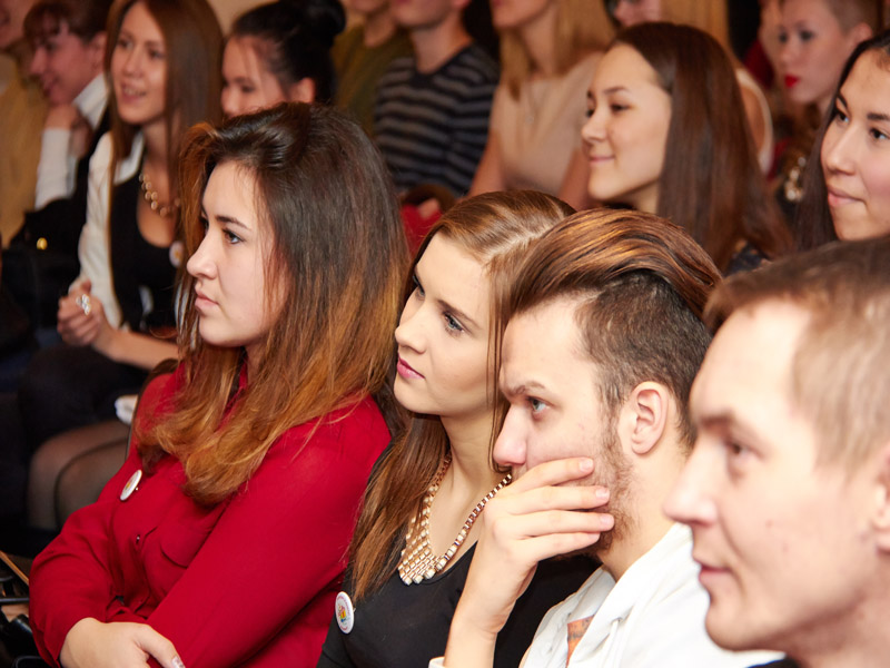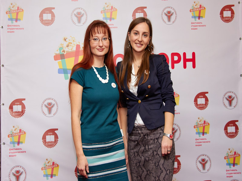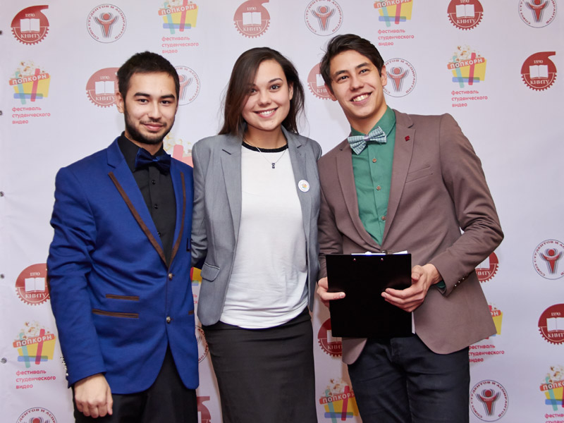 Приз Рафкату Сахапову за Лучшую мужскую роль вручает первая вице-мисс КНИТУ, официальное лицо фестиваля Попкорн-2014 Дарья Мининкова