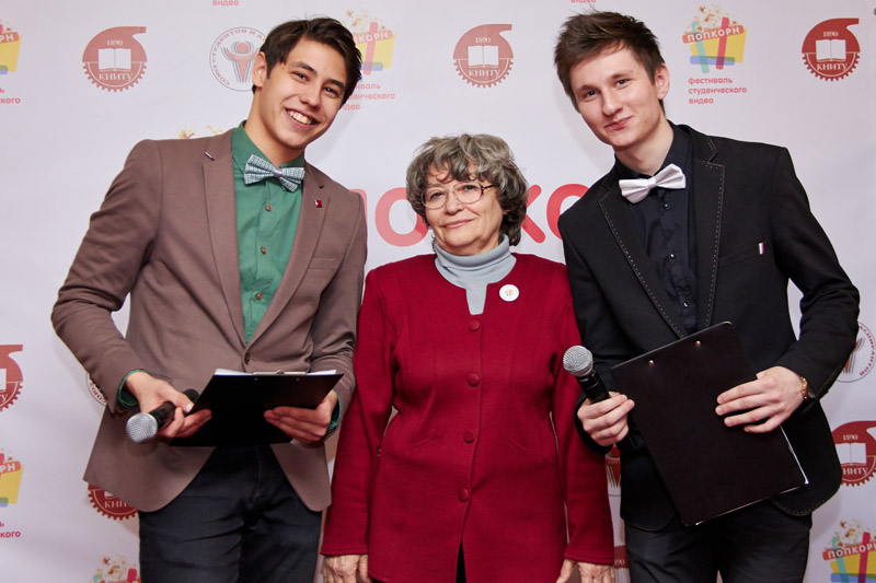 Начальник УИМ КНИТУ Флюра Абдулбаровна Абдулкашапова и ведущие церемонии Михаил Буланов и Степан Колясев