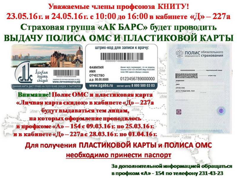 Выдача полиса ОМС и "Личной карты скидок" в кабинете "Д-227а"