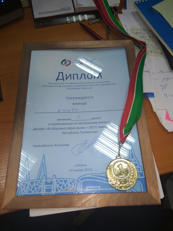 Сотрудники КНИТУ заняли 1-е место в соревнованиях по настольному теннису