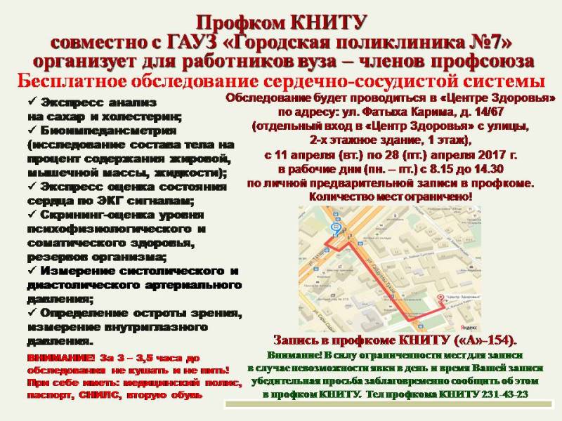 Бесплатное обследование сердечно-сосудистой системы для работников вуза – членов профсоюза