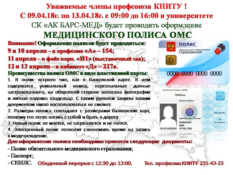 Оформление медицинских полисов ОМС в виде пластиковых карт страховой компанией «АК БАРС-Мед» в КНИТУ