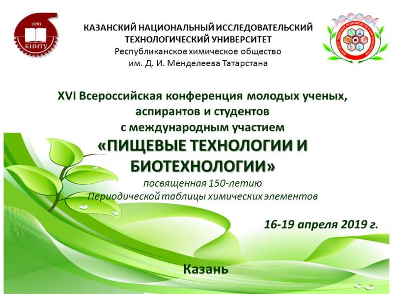 ХVI Всероссийская конференция молодых ученых, аспирантов и студентов с международным участием «Пищевые технологии и биотехнологии»