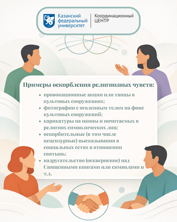 Закон различает критику религии и публичное оскорбление. Где именно проходит грань, на конкретных примерах показано в карточках Координационного центра КФУ.