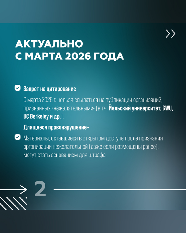 С марта 2026 года вступили в силу новые требования к работе с источниками и контрагентами. Запрещено ссылаться на публикации организаций, признанных нежелательными, включая ряд университетов и исследовательских центров.