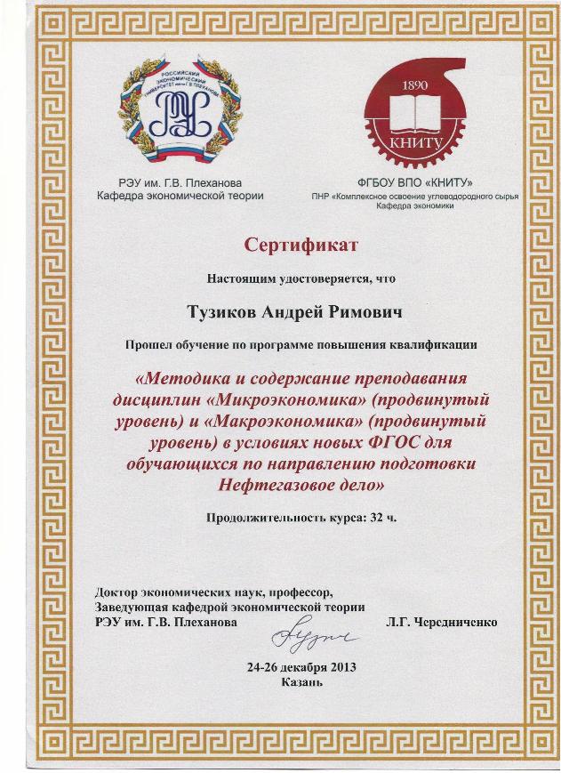 01.10.2009 - 30.06.2010, час. Диплом о профессиональной переподготовке, серия: ПП-1, номер: 679617. Выдан: ИДПО ФГБОУ ВПО "КНИТУ". Программа: Правовые основы хозяйственной деятельности.