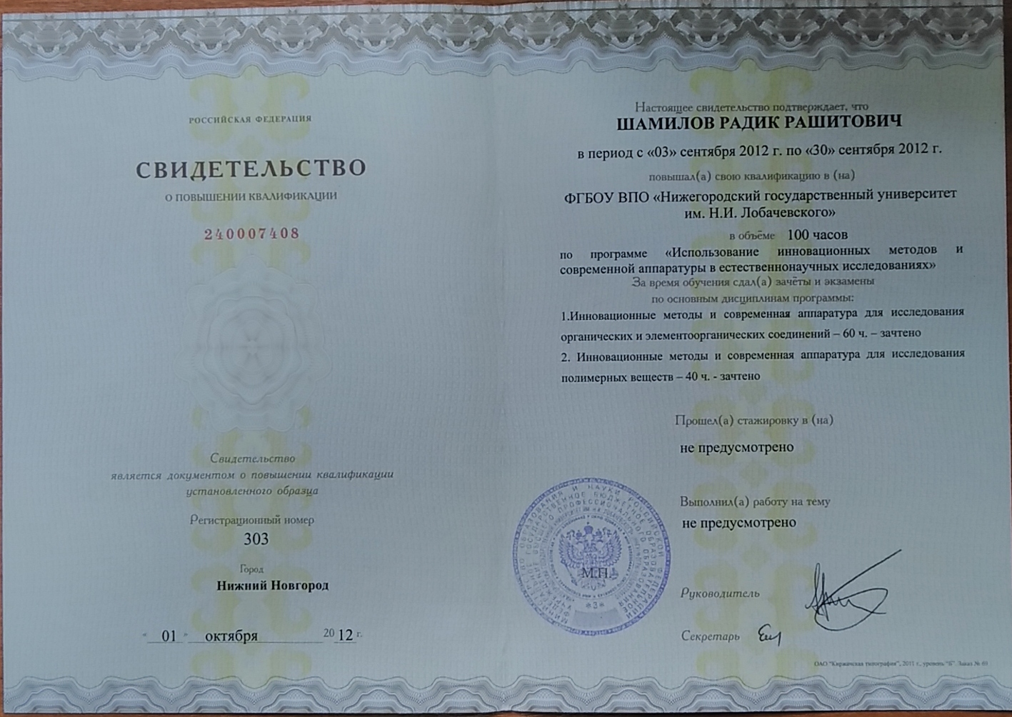 Повышение квалификации: