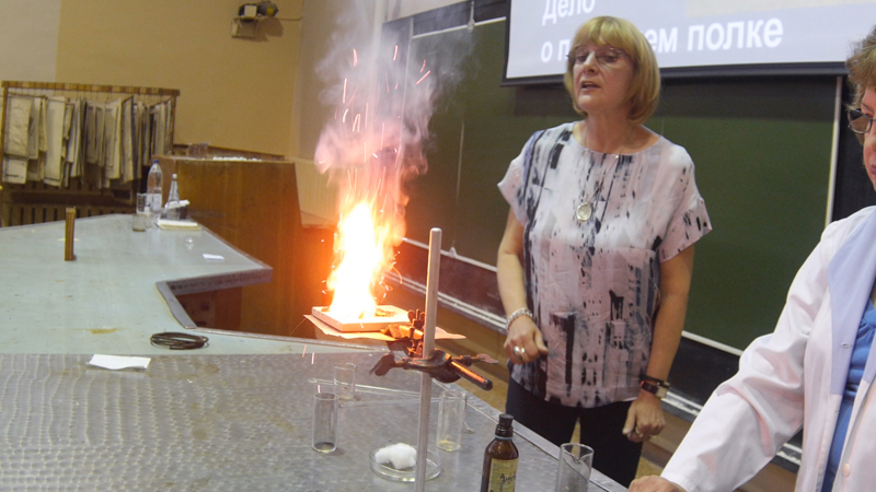 19 июня в лекционной аудитории корпуса «Д» ФГБОУ ВПО «КНИТУ» перед учащимися школ г. Казани прошло интерактивное шоу главного редактора журнала «Химия и жизнь» Любови Стрельниковой «Следствие ведут…химики»